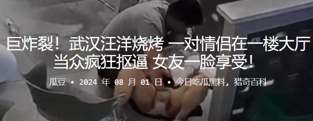巨炸裂!武漢汪洋燒烤一對情侶在一樓大廳當衆瘋狂摳逼,女友一臉享受!