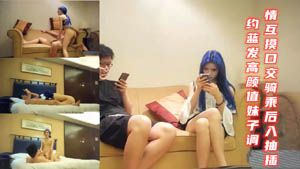 跟長相清純可人的藍髮妹子調情 互摸口交騎乘後入抽插